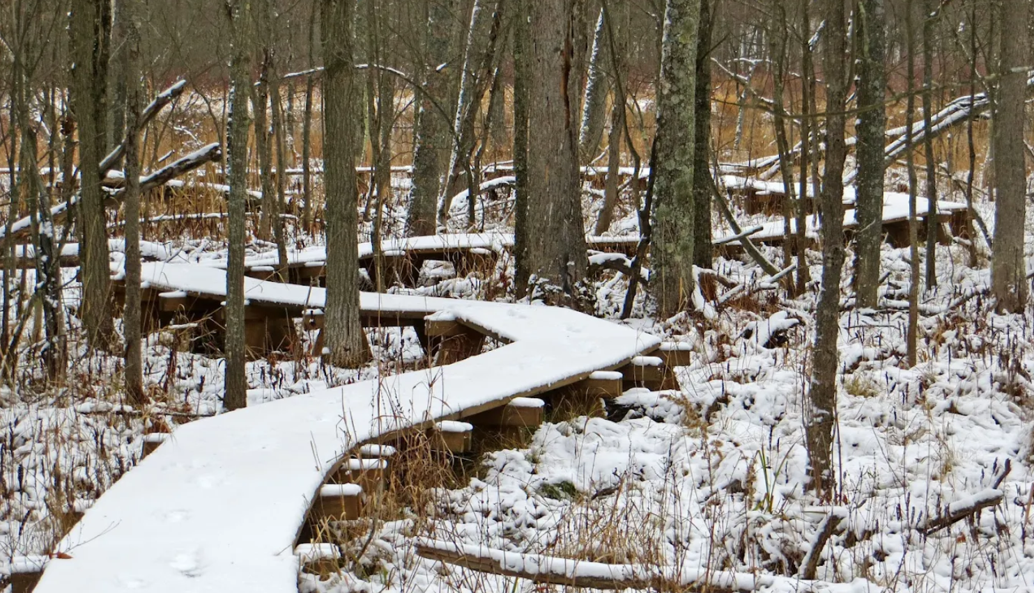 Even if you’ve been before, winter changes the whole vibe. Trails feel wider, sounds carry farther, and you start noticing the little stuff: chickadees bouncing through brush, woodpecker taps, deer tracks crossing a path like someone drew a dotted line.