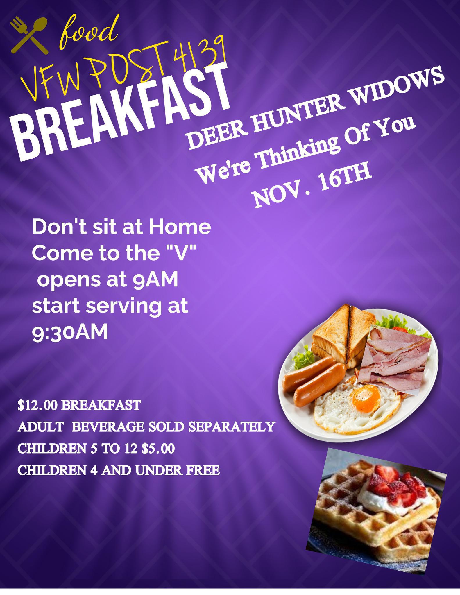 Deer Hunter Widows Breakfast – V.F.W. Post 4139