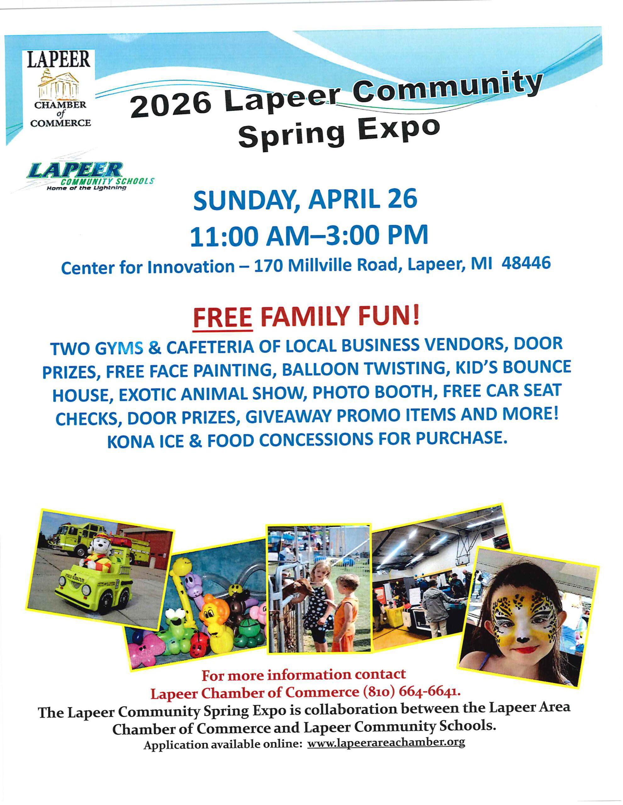 Bring the whole family for a fun-filled day at the Lapeer Community Spring Expo at the Center for Innovation! 🎉