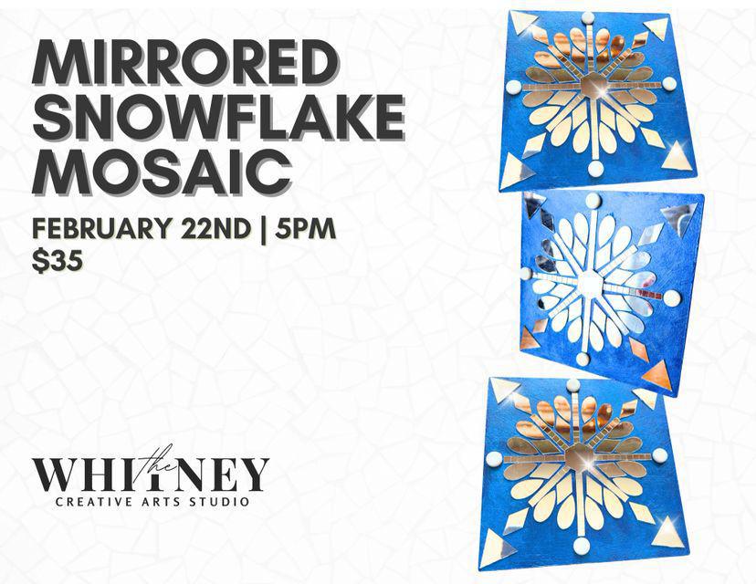 ❄️✨ Get ready to sparkle at the Mirrored Snowflake Mosaic workshop at Whitney Creative Arts Studio!