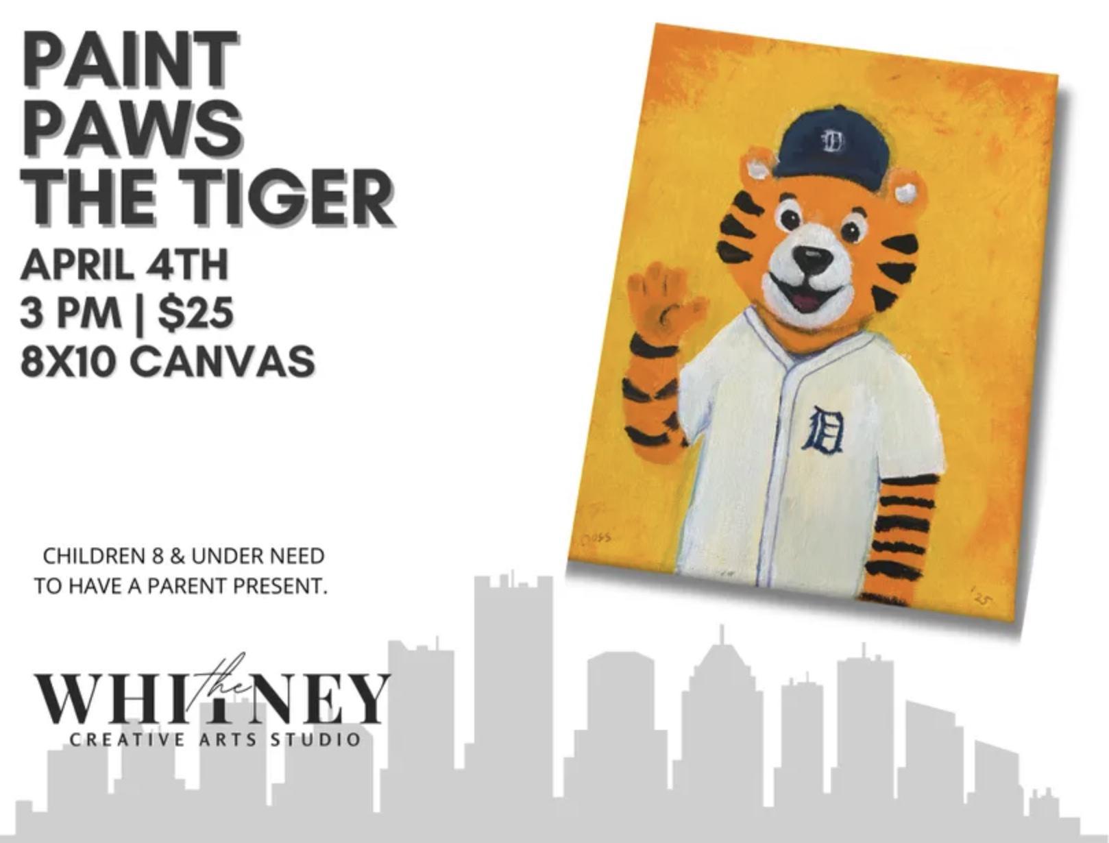 🎨 Come paint Detroit Tigers’ mascot **PAWS the Tiger** in this fun art class at The Whitney CAS!