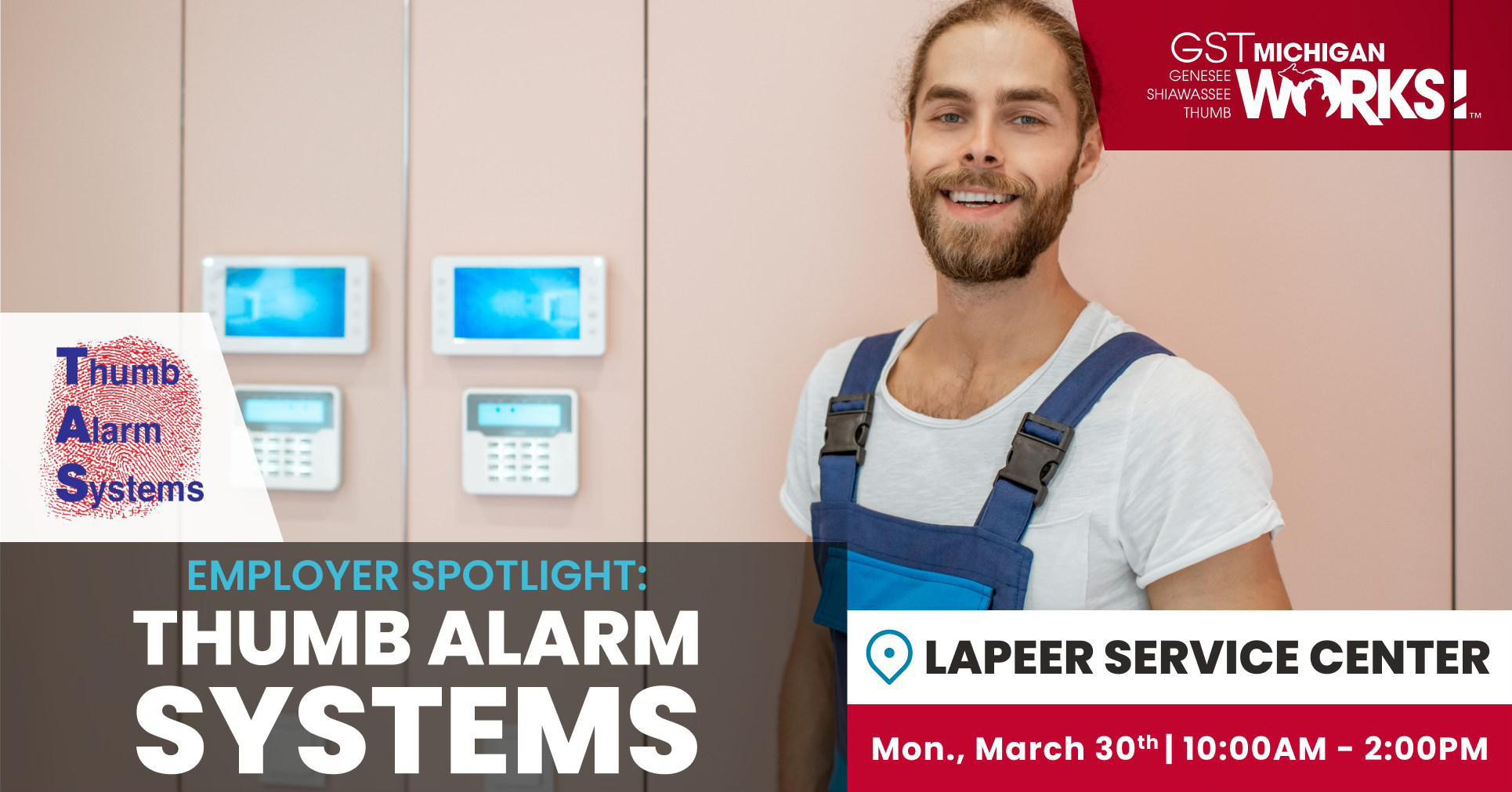 💼 Looking for a new career opportunity? Stop by the Employer Spotlight: Thumb Alarm Systems event at the Lapeer Service Center and connect directly with a local employer looking to grow their team.