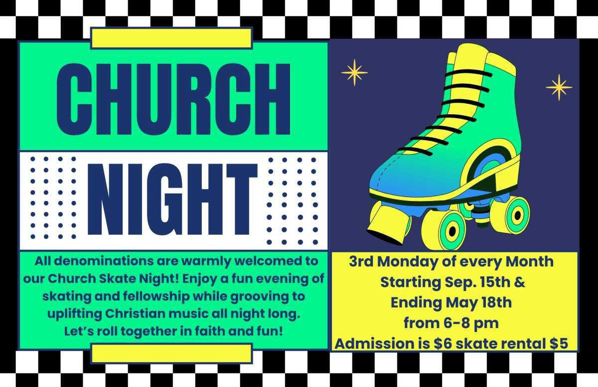 Join us for Church Night Skate β€” an evening of faith, fellowship, and fun on wheels!