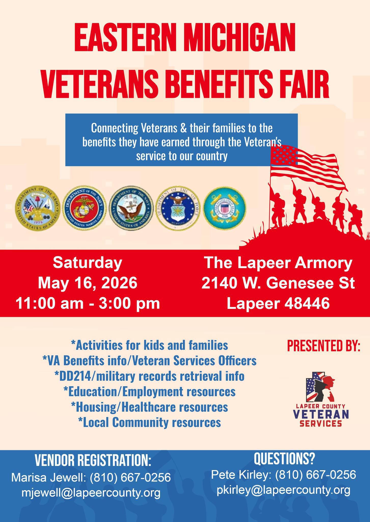 Event: 2026 Eastern Michigan Veterans Benefits Fair | Venue: Lapeer Armory | City: Lapeer, Michigan