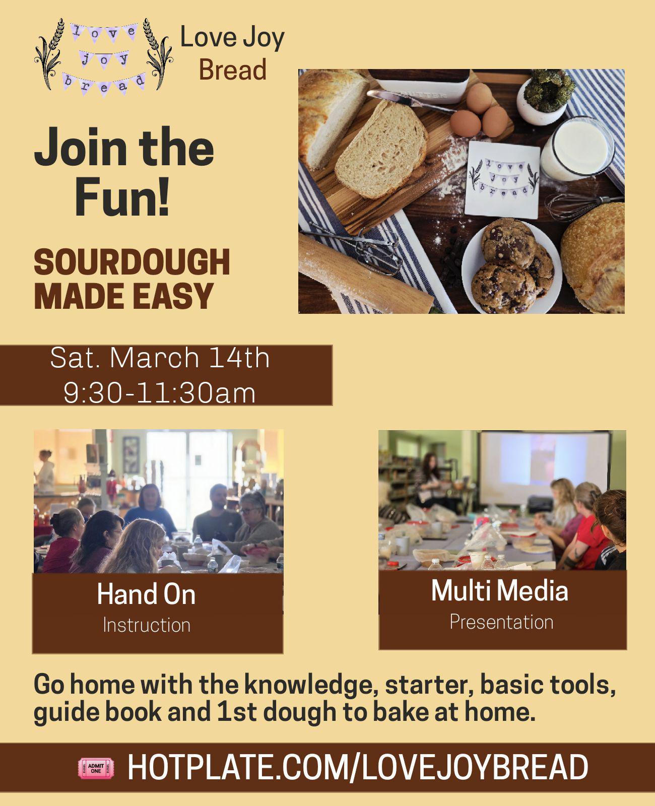 Intent: sourdough class, bread baking workshop, baking class, cooking class, hands on instruction, food education, kitchen skills, artisan bread, beginner friendly baking, fermentation class, culinary workshop, small group class